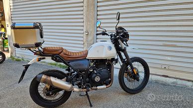 Vendo RE himalayan del 2019, leggermente modificata esteticamente all'anteriore tipo scrambler con kit utilizzato Ruta del Nabab...ma sono disponibili tutti i pezzi per il ripristino all'originale con paracolpi e cupolino. Revisione 07/2027. (Il bauletto con piastra originale del 450 non è compreso ... oppure 300 in più).