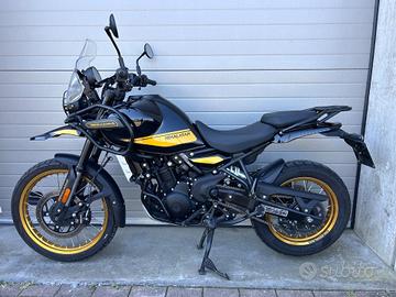 Royal Enfield Himalayan 450, anno 2024, 5200km , colorazione Hanle Black . Moto unico proprietario, verrà consegnata con secondo tagliando effettuato, ancora sotto garanzia casa madre . Accessori: Cupolino alto Royal Enfield, griglia faro Royal Enfield, griglia radiatore Royal Enfield, paramotore rally Royal Enfield. Moto in conto vendita