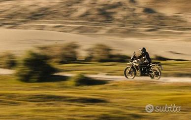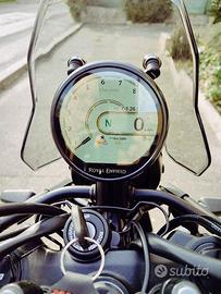 Prezzo promozionale f.c. al netto della PROMO di € 410,00 della versione base (kaza Brown, pr. listino f.c. € 5.900,00), valida fino al 30 settembre 2025 ; € 5.590,00 per le GRIGIE (Slate Poppy Blue, Slate Himalayan Salt), € 5.790,00 per la NERA (Hanle Black - cerchio oro Std), € 6.040,00 per la BIANCA MIMETICA (Khamet White - cerchio Tubeless), € 6.090,00 per la Hanle Black - cerchio Tubeless. Finanziamenti con formula 50&50, Valore Futuro Garantito, a Tasso Agevolato (4,99% fino a 60 rate), oppure tutto finanziato con MAXIRATA dopo 24/36 mesi pari al 50% del prezzo di listino. Grande dotazione, nuovo motore 452cc, 40cv, cambio a 6 marce,, coppia disponibile anche ai bassi regimi, frizione antisaltellamento, forcella Shova ant. da 43mm, monoammortizzatore post. con leveraggio progressivo, escursione 200mm, ampia luce da terra, freni da 320mm all'ant. - 270mm al post., Abs a doppio canale disinseribile al posteriore, grande autonomia con serbatoio da 17 litri, sella regolabile su due posizioni, altezza sella minima 805mm (con sella pilota opzionale), comando gas Ride by Wire, doppia mappatura, porta di ricarica USB tipo C, bellissima e funzionale strumentazione con Display TFT rotondo da 4 pollici, connettività telefonica,navigazione, mappa completa (fornita da Google Maps), controlli multimediali, fari ant. e post. a Led con indicatori di direzione integrati. Concessionaria ufficiale Royal Enfield, vendita, assistenza, ricambi, accessori, customize, oranizzazione mototour, noleggio, servizio di conto vendita, acquisto moto usate - ore negozio