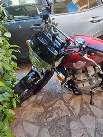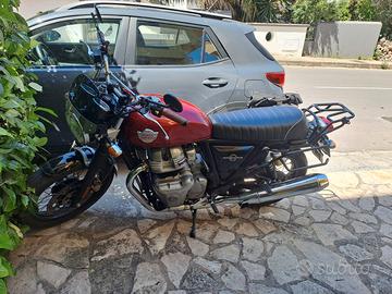 Vendo per passaggio a nuova moto Royal Enfield Interceptor del 2022 in condizioni perfette. La moto è provvista di barre laterali portaborse e portapacchi posteriore e di doppia sella (quella di serie e quella touring comprata successivamente). E' stato appena fatto il tagliando con sostituzione delle pastiglie freni e del kit catena-pignone. Le gomme sono state appena sostituite (Metzeler)