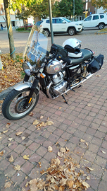 Monta molti accessori tra cui scarichi aperti a bottiglia per un sound fantastico, cupolino basso e alto Royal, griglia faro, sella Deluxe Touring, filtro aperto DNA e velocity stack, tappo olio motore con termometro, specchietti, borse laterali morbide e anche ho tutti i pezzi originali.