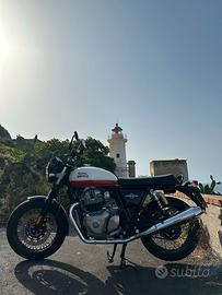 Vendo Royal Enfield Interceptor 650 unico proprietario con Diversi accessori: Specchietti Touring, Cupolino Fumè, tappo vaschetta olio sostituito con quello con il logo, copri traversino ( questo purtroppo è rovinato) questi originali Royal enfield, ho anche para serbatoio della Marca Trip Machine in collaborazione con Caffè twin, borsetta laterale per riporre il blocca disco e una X che va applicata nel faro, regalo anche portachiavi e tazza royal enfield.