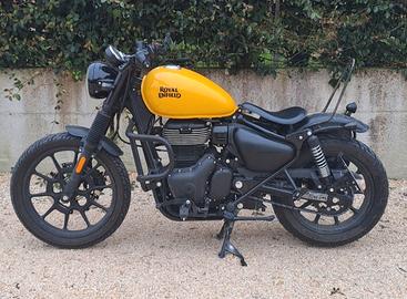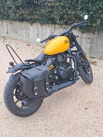 Vendo bellissima Royal Enfield Meteor 350 per passaggio ad enduro. Sono stati eseguiti i seguenti lavori : Manubrio ribassato Specchietti (non omologati) Paramotore Paragambe Sellino bobber monoposto Capiente borsa laterale Frecce Stop posteriore Sissi bar artigianale Parafanghi Targa laterale Soffietti forcella Gomme semitassellate nuove (non in foto) Batteria nuova. Attacco rapido per caricabatteria e caricabatteria Regalo casco integrale vintage 🎁 Ho tutti i pezzi comunque per far tornare la moto originale. Revisione appena fatta Rodaggio fatto con cautela, sempre tenuta al coperto e con cura.