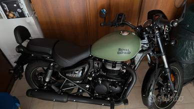 Vendo causa problemi personali Royal Enfield meteor 350 Fireball Matt green con paracolpi e cupolino basso + specchietti bar end !!! immatricolata 2025 km 600 primo tagliando fatto!!!!!é praticamente nuova!!!!!