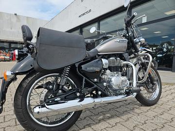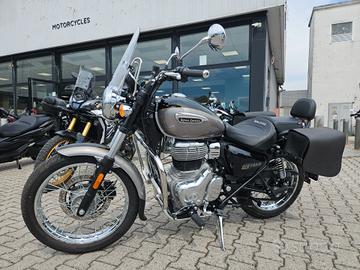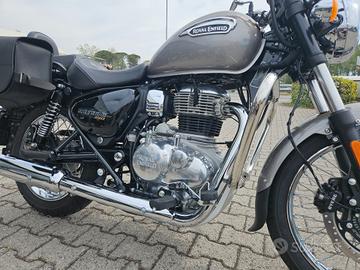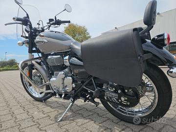 Condizioni da vetrina, pari al nuovo. Pochissimi chilometri. Accessoriata con cupolino, spalliera posteriore, valigie laterali in pelle. Tagliandi effettuati regolarmente. Garanzia Royal Enfield presente. Possibilità di finanziamento da 24 a 60 mesi a tasso agevolato. Valutiamo permute con moto o scooter.