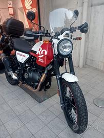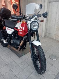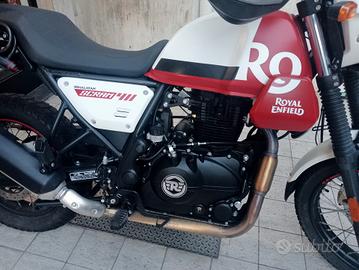 Royal Enfield Scram 411 ABS, colore bianco rosso, ottobre 2022, km 7900, in ottime condizioni generali, con paramani, portapacchi, baule e cupolino.