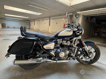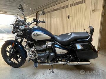 Vendo splendida Royal Enfield Super Meteor 650, immatricolata ottobre 2023, con soli 2600 km, in condizioni pari al nuovo. Moto sempre tenuta con estrema cura, utilizzata poco e mai incidentata. Perfetta sia per uso quotidiano che per viaggi. 🔧 Accessori installati: Scarichi Rhino Racing (sound più pieno e aggressivo) Pedale del freno maggiorato Estensione leva del cambio Poggiapiedi maggiorati originali Royal Enfield 🎒 Dotazione completa: Due valigie laterali originali Sella lunga comfort Cupolino paravento FILTRO ARIA FSA: più aria al motore, migliore risposta e sound più sportivo, lavabile e riutilizzabile per maggiore durata e risparmio. ✔️ Tagliandi regolari ✔️ Nessun lavoro da fare ✔️ Pronta all’uso Moto ideale per chi cerca una cruiser elegante, comoda e con un sound coinvolgente. 📍 Visionabile su appuntamento 💬 Disponibile per qualsiasi informazione 💰 Prezzo 👉 6.000€