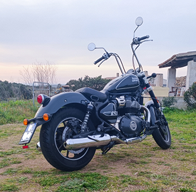 Moto usata in perfetto stato. Manubrio Ape Hanger installato (originale più basso a disposizione) per una guida comoda e rilassata per chi ha un altezza nella media (1.80 circa). Possiedo sella posteriore, rimossa solo per motivi personali di estetica. Moto comodissima per girare in centro ma anche per viaggiare (ho viaggiato per le coste della Sardegna per 3 giorni, 800km, con molta comodità). Oltre alla comodità, è anche una moto che quando accelera fa veramente il suo. Tagliandata 3 volte, cambio gomma anteriore. Prezzo non trattabile. Scrivetemi in app grazie. ?