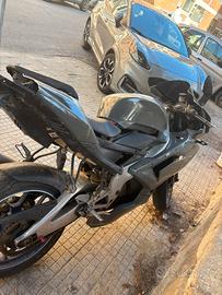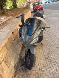 La moto è incidentata: danni visibili a [specifica qui brevemente, es. carene, forcella, cerchio anteriore...], ma motore funzionante (accende / gira libero -- scrivi la verità sullo stato).