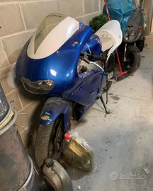 Vendo ra 50 anni 2000 completamente trasformata motore da competizione replica nardo rosso primo cilindro montato dopo la presentazione al motor show di Bologna! Appena finito il rodaggio carburatore appena ripulito impianto a nitro metano purtroppo perso il libretto ma basta comprare un telaio con libretto e un po' di passione e avrete un pezzo unico!codone in vetroresina Kawasaki ninja!