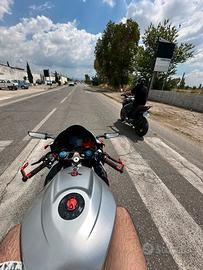 La moto è in perfette condizioni monta molte modifiche tra qui:pedane arretrate, fari xeno e angels eyes che cambiano colore dal telefono,vetrino sia nero che colorato, leva della frizione e del freno abbinate alla moto,pulsantiera per i comandi da pista.e stato effettuato anche la lavorazione del motore tra qui: lavorazione delle luci di scarico e aspirazione, Biella tm alleggerita,pistone sp,valvola rave sp la moto è stata bancata 30 cv
