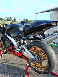 Aprilia rsv 1000 del 2000 in configurazione da pista monta pedane arretrate fly hammer, mono fg e forcelle revisionate ad inizio stagione scarico mivv con eprom dedicata, filtro aria kn e airbox maggiorato, candele nuove e olio motore con una pistata, contamarce, pompa radiale. La moto è targata. Prezzo trattabile.