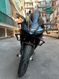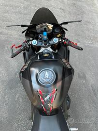 Vendo causa inutilizzo Aprilia Rsv4 1100 Factory del 2019 con 22000 km. La moto ha diversi accessori tra cui: Copri telaio in carbonio Copri forcellone in carbonio Para serbatoio in carbonio Deflettori Freni in carbonio (non montati) Cerchi verniciati di nero Cupolino Fumè Porta targa arretrato regolabile Frecce posteriori led Leve in ergal Copri serbatoio 1D Specchietti simil Stealth con frecce integrate Manopole Domino Nottolini Ergal Valvole gomme in ergal Para forcelle e para forcellone La moto ha fatto il tagliando dei 20000 km con la regolazione gioco valvole, pasticche anteriori sostituite, ha fatto una revisione delle forcelle anteriori, è equipaggiata con Pirelli BSB usate una mattinata in pista da amatore (unica pistata fatta) e cedo anche coppia di gomme Pirelli Diablo rosso 4 al 70%. Ovviamente cedo con tutti i pezzi originali e anche un carter motore aggiuntivo. Purtroppo il faro presenta un leggero segno che è stato fatto già lucidare dal vecchio proprietario. Prezzo trattabile, no affaristi o sognatori.