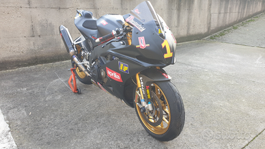 Aprilia rsv4 APRC in configurazione pista. La moto è una Factory (quindi tutto Öhlins) del 2010 aggiornata APRC con tutto il materiale originale aprilia (centraline, sensori, cablaggi, serbatoio, ruote foniche etc. etc). Nel 2019 è stato installato un motore nuovo a ricambio del 2014, ha 2.300 km.(tutto documentato) La moto è pronto pista. Olio/filtro motore, pasticche Ant. e liquido freni appena sostituiti.