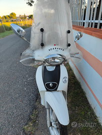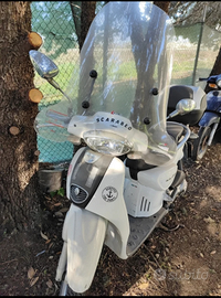 Scarabeo 100bianco con parabrezza e bauletto tenuto in garage disponibilità di venirlo a vedere Livorno Prezzo trat. Motorino per via della famiglia non utilizzato.