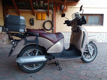 Solo per amanti Scarabeo. Vendo scarabeo 150 motore rotax del 1999 corredato di bauletto posteriore e valige laterali originali + secondo bauletto, parabrezza grande e cupolino originale Gomme nuove, cinghia e rulli nuovi, appena tagliandato. Difetti: qualche strisciata, parafango forato per aumentare il passaggio di aria verso il radiatore, frecce originali ma i supporti modificati. Lo scooter funziona perfettamente!