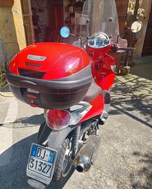 Aprilia Scarabeo 500, anno 2008, uniproprietario, 10.000 km. Scooter intonso. A riprova del chilometraggio e scarso utilizzo, monta i pneumatici originali di primo equipaggiamento. Utilizzato da persona adulta (il papà della mia compagna), sempre in modo tranquillo, sempre ricoverato in garage. In vendita perchè non più utilizzato. Dotato di parabrezza alto, bauletto Givi in tinta, antifurto elettronico originale Aprilia. Di un bellissimo colore rosso vivo. Mezzo molto comodo ed anche potente (28 Kw - 38 cavalli), idoneo sia per uso cittadino, che per trasferimenti extraurbani. Yamaha TMax / Yamaha XMax / Honda SH 300 Piaggio Beverly 500