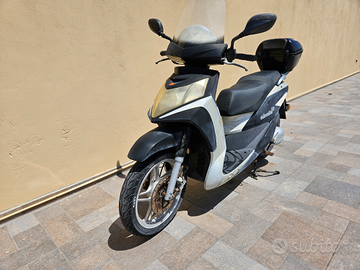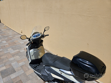 Lo scooter 151 di cilindrata, può andare in autostrada e si guida con patente A. E' datato con segni di usura sulla verniciatura (acquistato settembre 2010) ma funzionante, mai incidentato, km 3854, gomme ancora in buone condizioni, ha la revisione in scadenza al 31/07/25. Per metterlo in moto ha sia la pedivella di accensione che l'accensione elettronica con pulsante starter (va sostituita la batteria), due cavalletti (centrale e laterale quest'ultimo se inserito, non fa partire il motore per questioni di sicurezza), ha in dotazione un bauletto ed un piccolo porta oggetti sotto il manubrio, non ha spazio sotto la sella. In generale lo scooter anche se datato funziona bene, necessia solo di revisione e un tagliando.