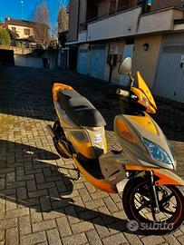 Scooter KYMCO CC 50 usato poco, omologato per 2 persone, in ottime condizioni, perfettamente funzionante e senza alcun difetto. Colore Orange-Grey con marmitta Gianelli silenziata (ho anche l'originale) Doppie chiavi + doppio sistema di accensione (elettrico ed idraulico) + Doppio cavalletto (laterale e centrale) ed ampio vano sotto sella per riporre casco e/o accessori vari. Revisione inclusa nel prezzo che farò al momento e valida per l’intero biennio. NO PERDITEMPO! Vero affare!