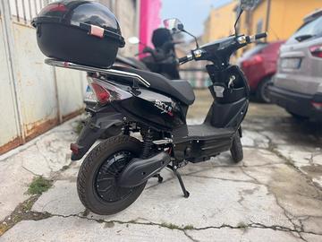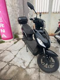 CICLO ELETTRICO TIPO SCOOTER CON PEDALATA ASSISTITA SENZA PATENTE CON BATTERIA. PRESTAZIONI Motore Elettrico brushless Potenza 1Kw 48V Velocità max 45km/h Coppia max 100Nm BATTERIA Tipo PIOMBO Tensione Amperaggio 48V 20Ah Tempo di ricarica 6 ore con carica da 3A Autonomia 40km (80km con doppia batteria) INFORMAZIONI GENERALI Cruscotto Digitale,Telaio Tubolare in acciaio,Illuminazione Anteriore LED Illuminazione Direzione e posteriore Alogena,Omologazione per 1 persona Presa USB integrata sul vano oggetti anteriore CICLISTICA Sospensioni anteriori Forcella telescopica idraulica,Sospensioni posteriori Doppio Ammortizzatore idraulico,Freni anteriori e posteriori a Disco,Pneumatici 3.00x16 Peso 64Kg Si valutano permute Possibilità di consegna in tutta Italia e isole