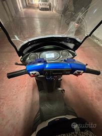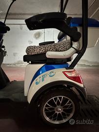 Tre ruote, facile da guidare, sta sempre in equilibrio, dotato di radio, antifurto, tettuccio antipioggia, parabrezza, clacson e bauletto per buste della spesa. Parte davanti in plastica danneggiato.