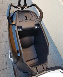 Tre modalità di guida: ECO (50 km/h) per risparmiare batteria, DYNAMIC (70 km/h) e SPORT (85 km/h) quando serve più potenza. Motore Sunra da 3kW affidabile, freni a disco con sistema CBS e vano sottosella molto capiente.