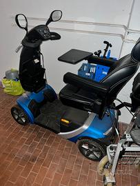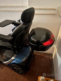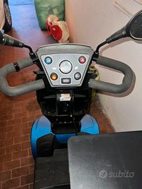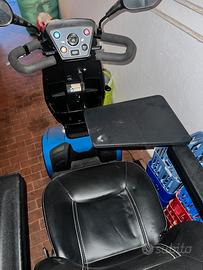 Scooter elettrico per persone con disabilità e mobilità ridotta. Per facilitarne il trasporto, il sedile può essere rimosso e il manubrio ripiegato. Dotato di ruote solide, cestino portaoggetti e batteria ricaricabile rimovibile.