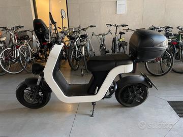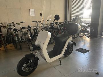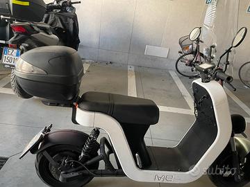 Prima immatricolazione: 12/09/2019 (tenuto in esposizione), acquistato il 2/02/2024 Velocità massima: 80 KM/H Autonomia: 70 KM in funzione del peso trasportato e dello stile di guida Batteria: batteria al litio estraibile, capacità nominale 2,88kW, peso 20kg, recupero energia in frenata Patente: B / A, A2 / A1 Ricarica: 5.5 per ricarica da 0% a 100%, Doppia modalità di ricarica: batteria rimovibile o attacco diretto dello scooter a presa domestica 220V Omologato per due Dotazioni extra: cavo per ricarica batteria rimovibile, bauletto, parabrezza Dimensioni: altezza sella 780 mm, lunghezza 1890 mm, altezza 1310 mm, larghezza 665 mm Peso: con batteria 90 kg Tenuto in BOX coperto