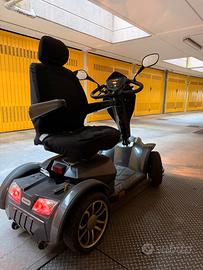 Vendo scooter Wimed Tiger usato poco e batteria perfettamente funzionante. Seduta con diverse regolazioni come schienale, braccioli e poggiatesta, come anche il piantone dello sterzo che può essere regolato in profondità. 4 ruote pneumatiche Piantone dello sterzo regolabile in profondità Sedile, reclinabile e ruotabile a 45°, completo di poggiatesta e cintura di sicurezza Braccioli ribaltabili e regolabili in altezza 2 specchietti retrovisori Luci e segnalatori a led anteriori e posteriori Clacson e cicalino di avviso retromarcia Doppia sospensione anteriore e mono ammortizzatore posteriore Display di bordo con comandi e informazioni su batteria, distanza percorsa, velocità Freno di stazionamento aggiuntivo oltre al classico elettrofreno CARATTERISTICHE TECNICHE Ingombro larghezza: 73 cm Profondità totale: 160 cm Altezza sedile da terra: 70 cm Altezza sedile- pedana: 45 cm Altezza pedana terra: 22 cm Larghezza seduta: 46 cm Velocità massima: 15 km/h Pendenza massima: 6° Autonomia: 25-35 km Ruote anteriori: 100/55-10 Ruote posteriori: 100/55-10