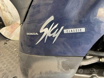 Vendo per liberare spazio in garage Scooter Honda Sky 50cc versione Classic, un’icona di affidabilità e stile vintage. Lo scooter è in condizioni eccezionali, tutto originale, è sempre stato custodito in garage e mai è sostituito un pezzo. Il motore non si avvia perchè fermo da 15 anni quindi necessita di una piccola revisione generale (batteria scarica) Chilometraggio irrisorio: solo 1.369 km originali. Modello: Honda Sky 50 Classic Chilometraggio: 1.369 km Stato: Eccellente, tutto originale Vantaggi: Leggerissimo, ruote alte per massima stabilità e consumi bassissimi. Lo scooter viene venduto con certificato di circolazione originale. Trattandosi di un 50cc, la targa verrà rimossa al momento della vendita come da normativa (pratica a carico dell'acquirente). Prezzo: 450 € (escluse spese passaggio proprietà) Luogo: Siena Disponibile per qualsiasi prova o visione.