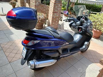 Vendo scooter Majesty del 2004 con soli 18.500 km. Sempre tagliandato (con fatture dimostrabili) è in condizioni da vetrina per cui vi invito a venire a vederlo personalmente. Sempre tenuto in box e trattato con cura maniacale non necessità di nessun lavoro anche perché è stata effettuata la revisione competa da poco tempo. Lo vendo a malincuore per problemi personali Contatti solo tramite mail
