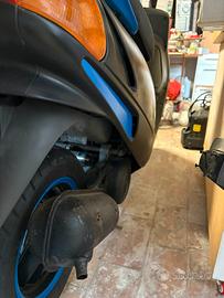 Malaguti F10 Jet Line - Black Edition Vendo intramontabile Malaguti F10, uno degli scooter più agili e scattanti mai prodotti. Ideale per chi cerca un mezzo leggero per la città o un’ottima base per un progetto di restauro/tuning. Caratteristiche principali: • Modello: Malaguti F10 (motorizzazione Minarelli orizzontale, una garanzia di affidabilità e prestazioni). • Estetica: Carene nere opache con dettagli blu, look aggressivo e "minimal". • Ciclistica: Forcella anteriore HD-Fork e impianto frenante anteriore a disco Grimeca per una guida precisa. • Pneumatici: Gomme Pirelli con ottimo battistrada residuo. • Condizioni: Lo scooter si presenta completo; sono presenti alcuni segni di usura sulla carrozzeria e una riparazione sul retro dello sterzo (visibile in foto), normali per l'età del mezzo. Il motorino è perfetto per chi vuole un F10 con carattere, già dotato di cerchi blu a contrasto e grafiche dedicate. accensione manuale no elettrica con batteria carica si visto e piaciuto ritiro zona (ischitella lido castel volturno)