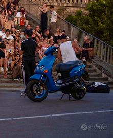 Inoltre esteticamente il motorino è stato verniciato, cerchi bi-color, applicati sticker, cambiate manopole, pedana in alluminio, faro led e sono state fatte le palpebre arrabbiate ai fari.