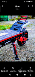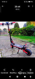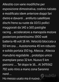 Nuovo ,scooter monopattino professionale,usato solo per esposizione. Ruote maggiorate da 10 pollici doppio mono ammortizzatore dischi da 160 flottanti pastiglie racing ,antifurto con telecomando satellitare codino ant.e post rialzato e rivisto doppi fari...acceleratore a manopola motore post 1.900 Wat potentissimo e bloccato a 50km ora batt.48 volt .. unico esemplare nuovo gomme ancora incerate ...solido e robusto peso 33 kg pieghevole ..portata 150 kg ..manopole racing display multifunzione con menù secondario ... Mai usato solo ritiro a mano zona Saronno nord. .tel 3475562792... Trattabile dopo visione. .