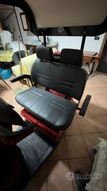 Dotato di doppia batteria, autonomia di 60 km, tettuccio rigido (canopy) con parabrezza rimovibile, che protegge dalla pioggia e dal sole e con doppia seduta.