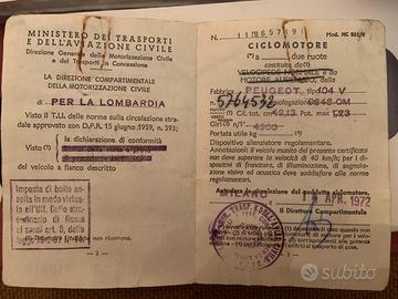 Peugeot 104V bleu anno 1972, in buone condizioni. Funzionante. Perfetto. Libretto originale!
