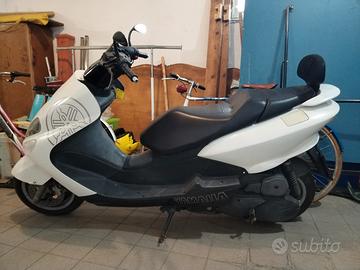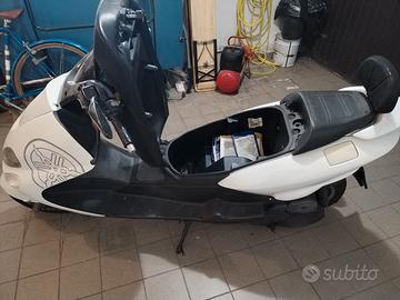 Vendesi Yamaha Majesty 125 anno 2002 con 30.000 km, con vari lavori eseguiti negli anni come verniciatura , adesivi , luci bianche , specchietti e per renderlo più scattante variatore e marmitta GPR omologata pagata 300€ come nuova, suono da Tmax, la spesa totale delle modifiche si aggira attorno ai 1000 euro. Vendo perché purtroppo sono anni che non lo uso più. Ha dei piccoli segni dovuti all'età ( 24 anni ) e all'utilizzo fatto in passato ma comunque in buono stato. Utilizzabile con Patente B (quella della macchina). Scooterone divertente economico con sotto sella per due caschi. Appena sostenuta ulteriore consistente spesa tra meccanico e revisione per renderlo pronto al passaggio di proprietà. Formula visto e piaciuto. Bollo pagato. Revisione appena fatta. Pronto per il passaggio di proprietà. No curiosi e perditempo.
