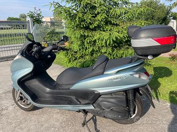 Vendo Yamaha Majesty 400 cc con soli 24000 km, tenuto molto bene, verde acqua metallizzato, cambio automatico con variatore, ottimo per viaggi in due, consumi bassi, pneumatici 80%, sottosella per alloggiare 2 caschi, scarico akrapovic e anche originale.