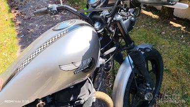 Vendo per passaggio ad altro genere bellissima Scrambler realizzata su telaio Honda CB 400 N del 1982. Moto originale acquistata da unico proprietario e successivamente trasformata in versione Scrambler tramite meccanico specializzato al restauro di mezzi storici, che ha curato minuziosamente ogni passaggio. Si conservano le foto della trasformazione. Pneumatici che rispettano le prescrizioni come da carta di circolazione, attualmente revisionata ed assicurata, esente da botto in quanto storica. Attualmente con il nuovo tachimetro conta 1.500 km, sul vecchio prima della trasformazione ne contava 6.500 km. Prezzo non trattabile quindi contattatemi tramite chat solo se veramente interessati. Disponibile per visione e prova.