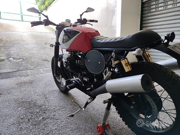 Scrambler su base Moto Guzzi V50, customizzata da rinomata Offcina della Campania, rifatta da 0 e portata a 750 cc, monta terminali Termignoni, sound da paura, moto Trentennale iscritta al Guzzi World Club ed ASI