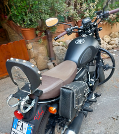 Scrambler 250 cc, marca ARCHIVE con motore Honda, dicembre 2022 con 5800 km, sempre in garage e poco usato, con accessori spalliera passeggero, faretti aggiuntivi, borse in tinta e in stile scrambler, cerchi in lega, perfetto come nuovo.