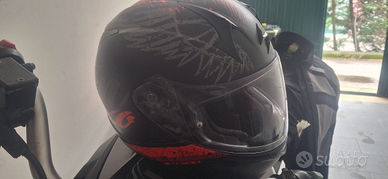 Vendo con Casco (L) giacca ( con protezioni braccia e schiena taglia L) guanti zainetto da viaggio (con calamite per serbatoio) e telo per coprire la moto.