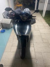 tutte plastiche e carene nuove nere metallizzate in blu, fari e abbaglianti bianchi, accessori rossi (adesivi rossi, manopole e freni), specchietti nuovi.