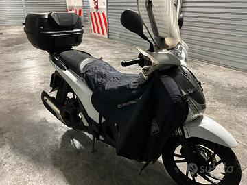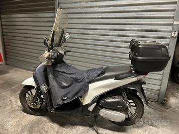 Scooter Honda SH 150 anno 2014, 50.000 km, colore bianco con inserti neri, doppio freno a disco, provvisto di bauletto Givi per 2 caschi. Scooter sempre tagliandato con cambio olio ogni 4.000 km. Completo di coperta copri gambe tucano. Prezzo trattabile