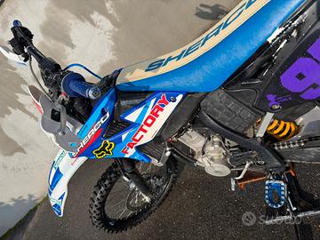 Sherco 250 4t targato, avviamento elettronico, tagliando eseguito da meccanico di fiducia completo di filtro aria, pulizia iniettori, kit battery nuovo. Copertone posteriore nuovo Uso amatoriale, con accessori ( paracoppa, manubrio, plastiche ). Trattabile