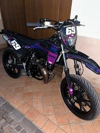 La moto monta : cilindro top nero 70 cc phbg 19 filtro a cono malossi scarico gianelli messo a nuovo albero top spalle piene cambio appena cambiato freccie micro-led porta targa pieghevole grafiche personalizzate 100% No perditempo . Per altre informazioni non esitate a scrivermi .