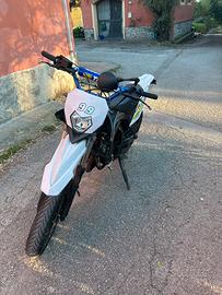 Vendo sherco 50 sm six days per passaggio ad auto, moto anno 2018. kit trasmissione buono, freni buoni,gomma anteriore appena cambiata e gomma posteriore seminuova , manubrio protaper con paracolpi, 4 frecce nuove mini omologate, manopole protaper appena cambiate. Monta come elaborazione Albero nuovo attenta spalle piene Cilindro top nero 75cc rettificato,Testa scomponibile derivazione 76cc Carburatore21 cuscinetti e paraoli cambiati tutti Frizione rinforzata top