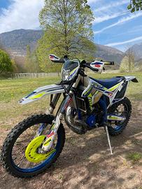 Vendo Sherco fse 300 factory 2t gommata 90% con cerchi takasago excel rim leve anti rottura piastre forcelle ricavate dal pieno agganci manubrio antirottura scarico completo fmf powercore 2 la moto è pronta a tutto montando qualsiasi tipo di protezione tra le quali: - protezione scarico in carbonio - protezione disco posteriore - protezione disco anteriore - protezioni steli - protezione motore e leveraggi - protezione cruna catena - paracolpi manubrio - protezione scarico - protezioni radiatori completa in alluminio - protezione telaio laterale La moto non ha mai corso, l’ho usata solo per brevi uscite domenicali. Inoltre si presenta in ottime condizioni salvo qualche segno dovuto alle uscite in enduro (con plastiche nuove la moto diventa nuova). Ha 130 ore di fabbrica (primo pistone ancora montato). vendo con libretti originali uso, manutenzione, kit revisione ecc.. ne sono rimaste solo poche essendo le ultime a carburatore, per altre foto/info scrivetemi. (insieme alla moto regalo testa S3 nuova mai montata del valore di 200€) No perditempo e no sognatori grazie!