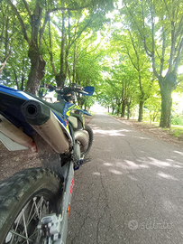 vendo sherco se 125 2022 senza nessun problema, con impianto elettrico semplificato ma fornisco anche l'impianto originale compreso di frecce e altri componenti. la moto ha 2500 kilometri, cambio olio effettuato regolarmente e miscela sempre fatta al 2.5%. moto pronta all'uso e disponibile per prova.