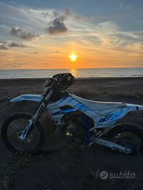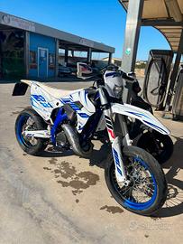 La moto è sempre stata usata per tragitti brevi e pochissime volte adoperata per uso fuori strada, attualmente ha circa 300 ore di utilizzo totali ma a inizio aprile sono stati fatti tutti i lavori per la preparazione alla vendita (vd. sotto). Revisione effettuata a gennaio. •La moto attualmente monta i seguenti componenti aftermarket: -kit completo motard con gomme seminuove -kit completo plastiche polisport bianche -grafiche bold designz (bold.) full custon metallizzate e olografiche -para pignone cmt in carbonio -catena twenty 520 heavy duty (blu) -corona da 52 (blu) -pastiglie freni entrambe seminuove -espansione fresco -terminale bud racing in carbonio -copri serbatoio cmt in carbonio -sella blackbird (blu) -manubrio piega alta -2 mappature dedicate (soft e hard) -filtro twin-air -leva freno e frizione polisport antirottura -pacco lamellare V-FORCE 4R -ponticelli frizione e freno anteriore sherco powerparts in ergal blu -pedane nr team in ergal blu -leva marce nr team blu -leva freno posteriore nr team blu •Alla moto sono stati effettuati i seguenti lavori (effettuati l'ultima volta a inizio aprile 2026): CAMBIO: -pistone ogni 100 ore -olio ogni 50 ore (MOTUL 10W-40) -liquido del radiatore ogni 100 ore -tutte le guarnizioni -pastiglie -lana del silenziatore PULIZIA: -completa del carburatore ogni 100 ore -del filtro dell'aria ogni 50 ore -spurgo impianto frenante e frizione •La moto presenta: -leggere imperfezioni nel telaio (sverniciato in punti poco visibili) -imperfezioni nelle plastiche (fianchetti leggermente grattati a seguito di una caduta e codone posteriore spaccato a seguito di una caduta) -impianto elettrico cross (no chiavi e no frecce che posso aggiungere su richiesta personalmente al momento della vendita) •Fornisco anche -kit completo enduro (originale) -plastiche complete immacolate (originali) -scarico completo originale -silenziatore hgs shorty -accessori originali -tutti i pezzi sostituiti (su richiesta) PREZZO TRATTABILE